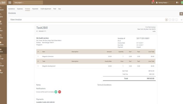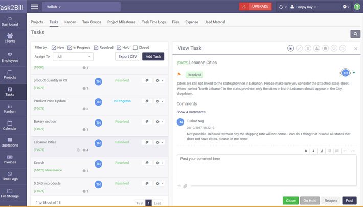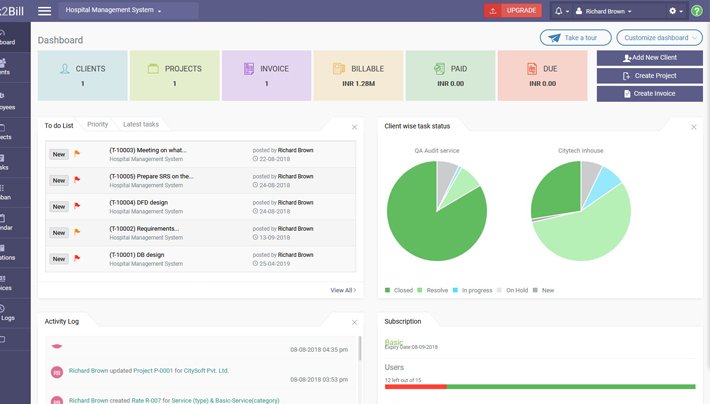 Task2Bill helps you run your business efficiently by providing better Resource utilization, Project Management, Timesheet tracking, Quote generation, Invoicing and Online Payments.